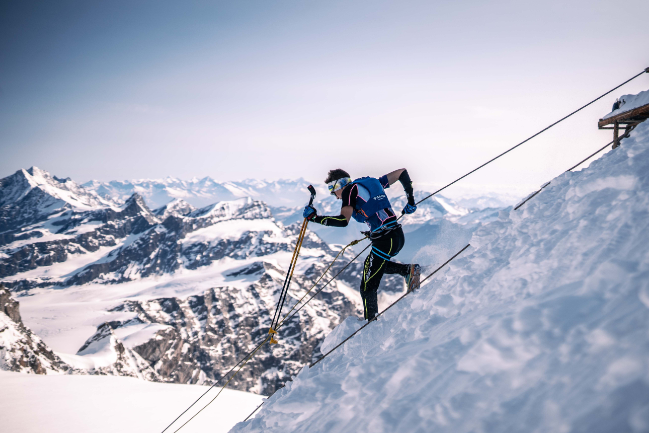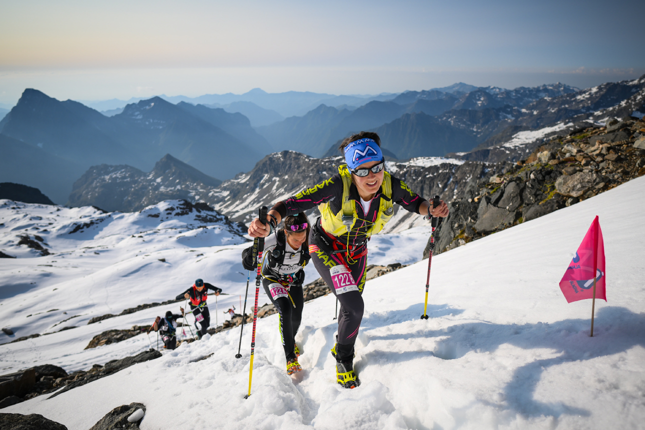 Racing in teams of two for safety, 334 athletes surged from the village square at dawn to head up the classic course to the summit of Monte Rosa and back for 35 km with a massive 7,000m vertical climb between ascent and descent.