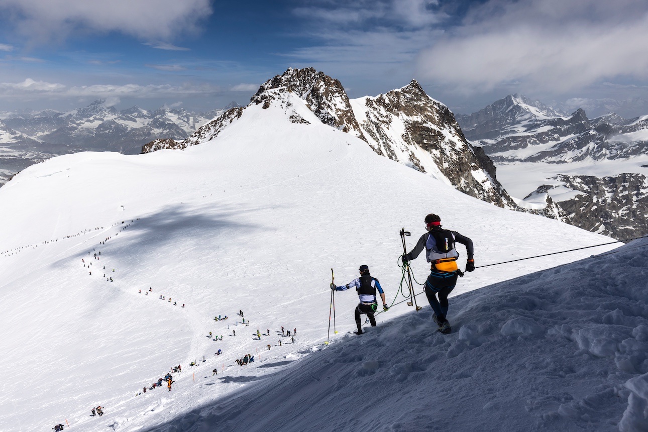 La gara maschile ha visto una prestazione incredibile del piemontese Marcello Ugazio, che ha stabilito un nuovo record dopo aver vinto ieri la nuova SkySummit fino alla vetta del Monte Rosa insieme al suo compagno di cordata Alex Rigo. Il nuovo record della Monte Rosa Vertical è di 44’55”.